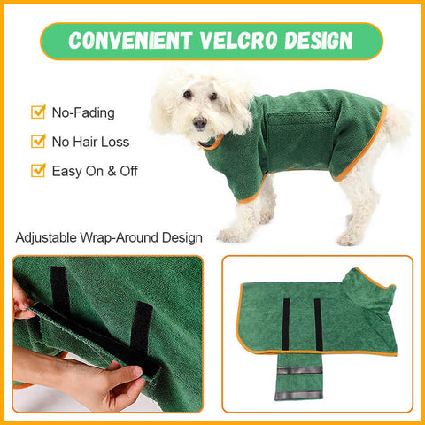 Dit badpak voor huisdieren is gemaakt van zacht, ademend polyester dat snel water absorbeert en helpt je meer tijd te besparen bij het verzorgen van je huisdier na een regenachtig bad, douche of wandeling om te voorkomen dat ze koud worden of stinken.